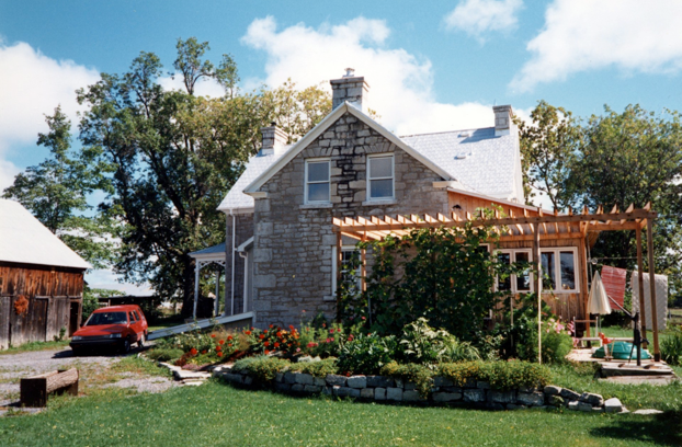 This one-and-a-half-storey stone farmhouse was built in the mid-1860s for William Maxwell Herdman and Mary Moffat, to replace the original one-and-a-half-storey log house listed in the 1861 census. (The veranda on three sides may have been added later.)