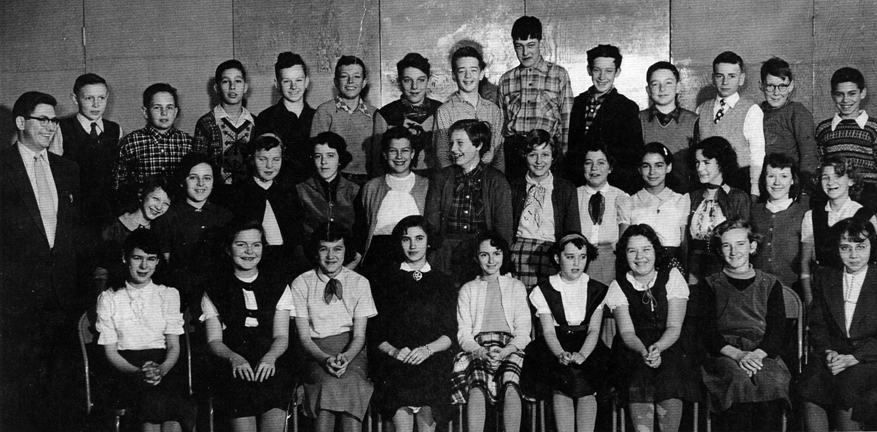 Middle row: Mrs Faris, - , Betty Findlay, Cheryl Hyde, - , Nelson Holtman, William Simmons, - , - , Brian Hill, Susan - , - , Mary Shouldice.